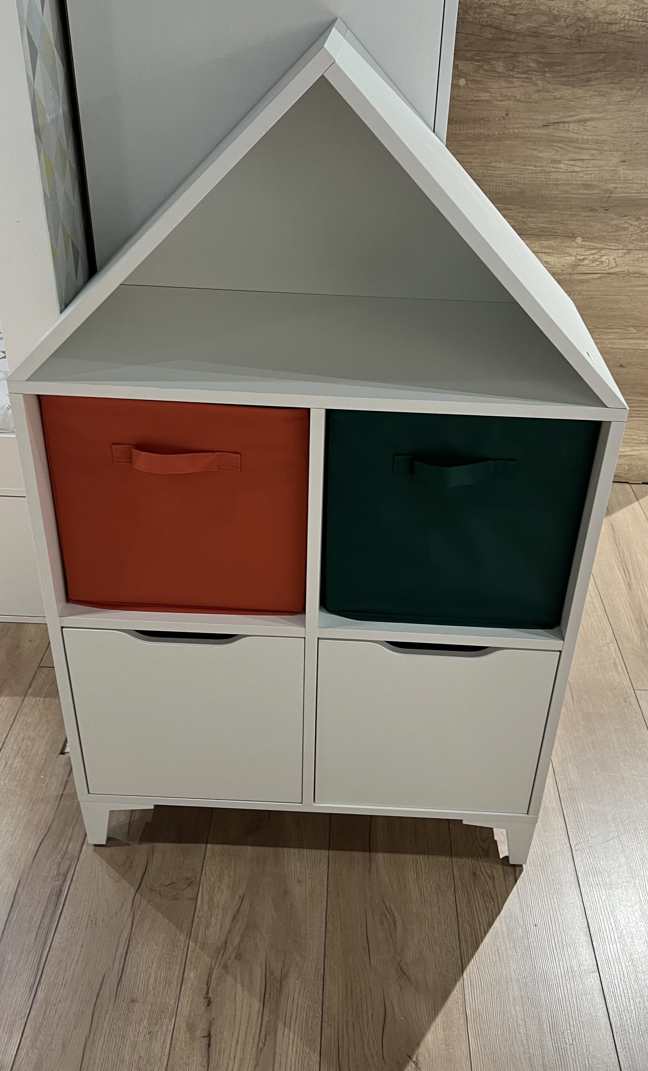Стеллаж в виде домика - оригинальное и практичное дополнение в интерьере детской комнаты.