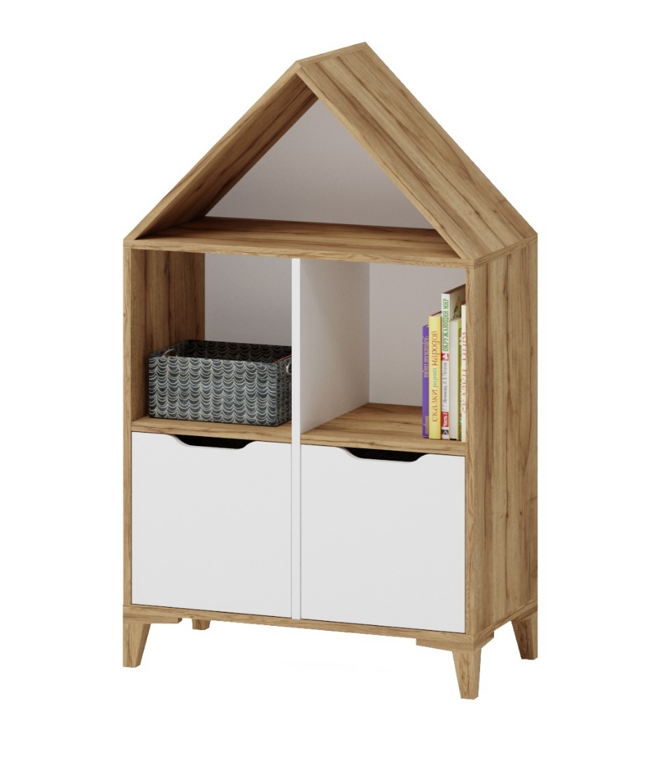 Стеллаж в виде домика - оригинальное и практичное дополнение в интерьере детской комнаты.