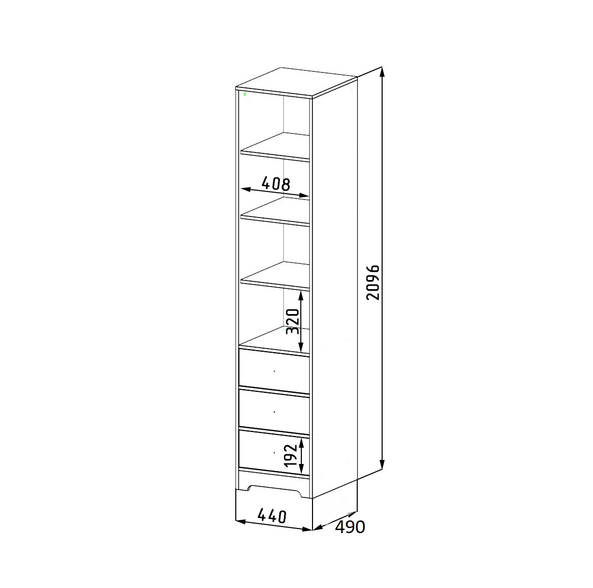 Габариты пенала: ширина 440, глубина 490, высота 2096 мм