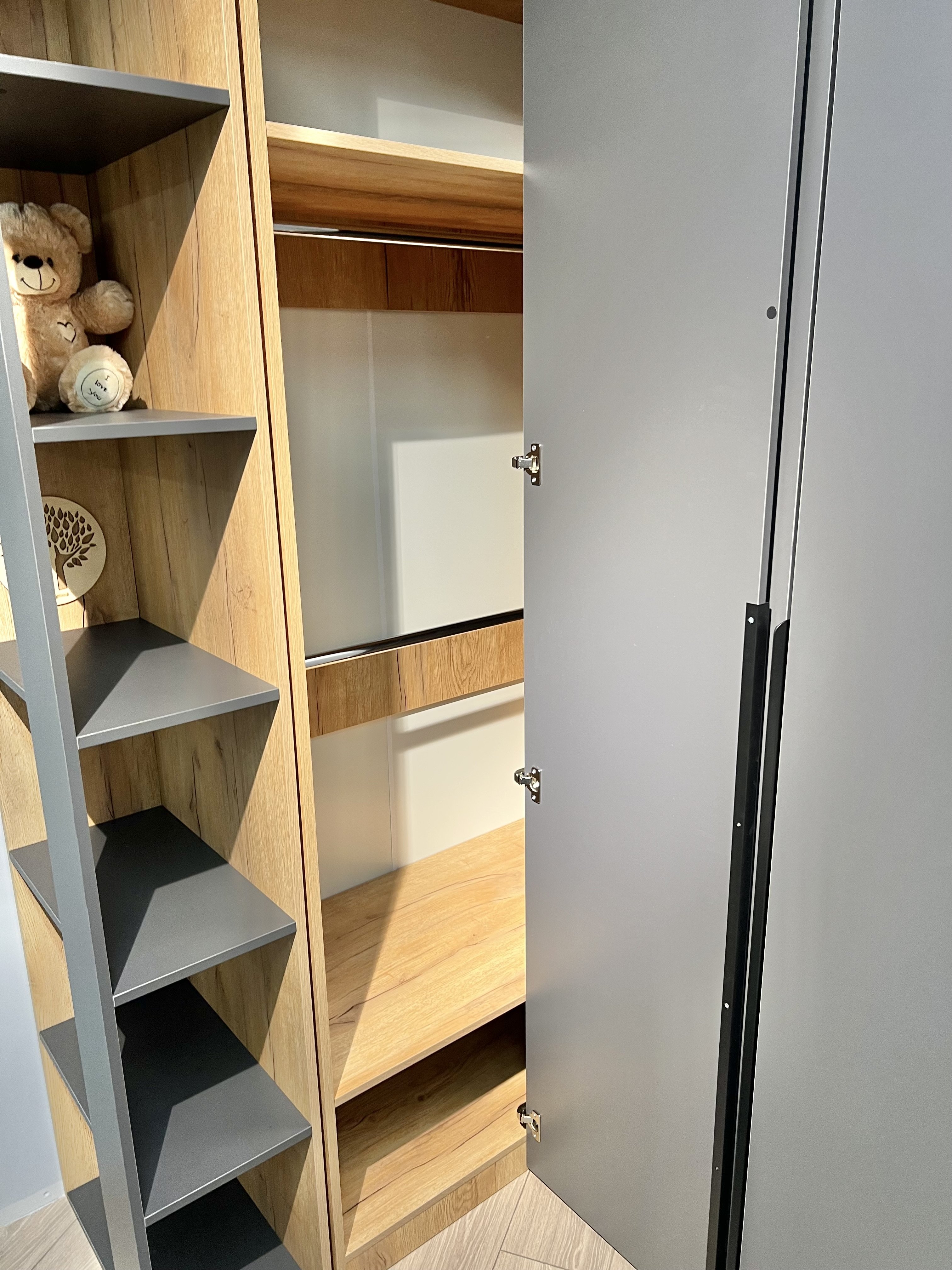 На дверях шкафа и пенала установлены доводчики.