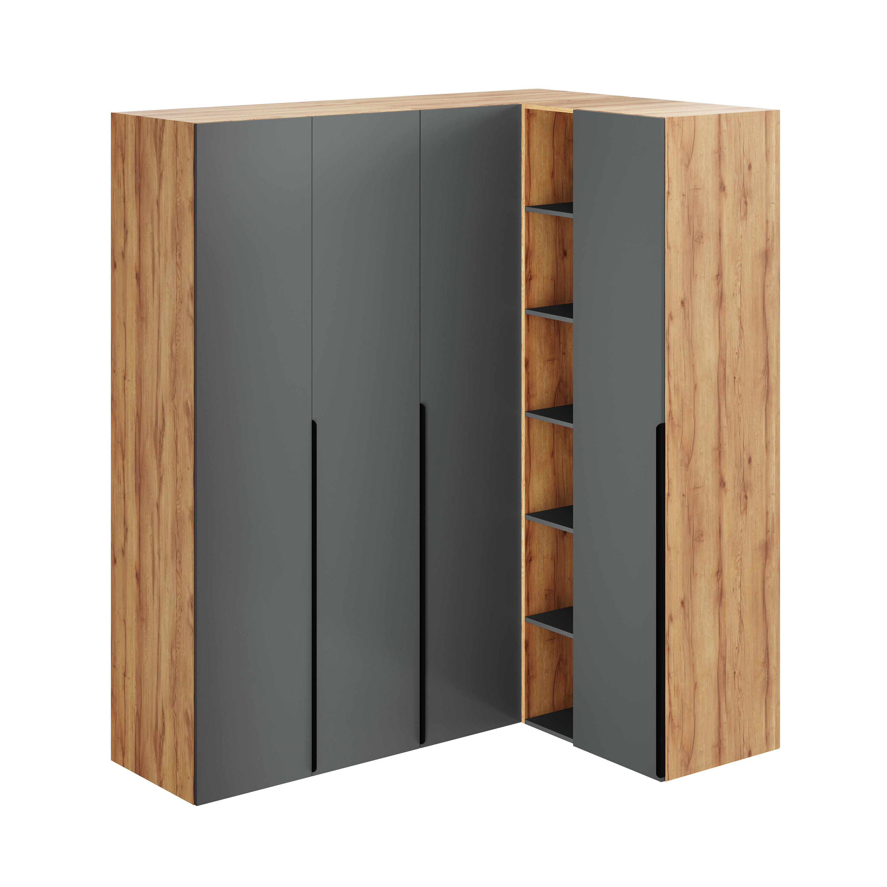 Распашной шкаф + угловой шкаф + стеллаж переходной + пенал коллекции Брайт Графит