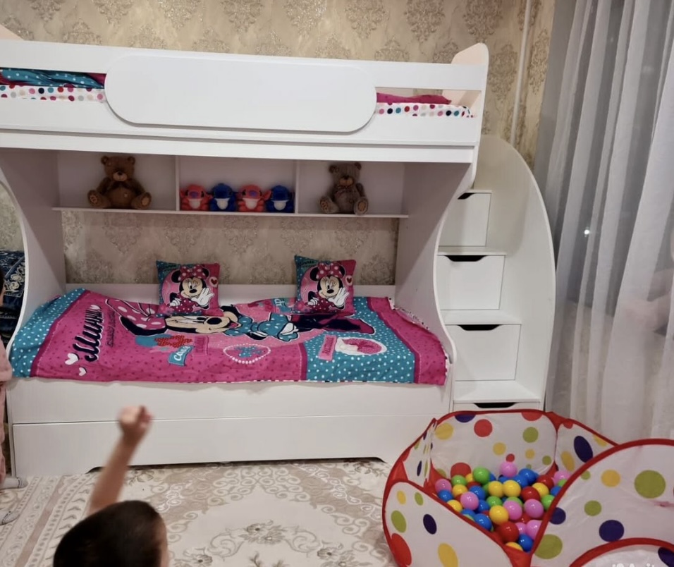 Вместо них - цельный и прочный настил из ЛДСП, который выдерживает сверхвысокую нагрузку и позволяет расположиться даже взрослому с ребенком.